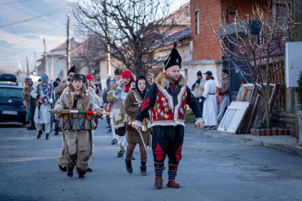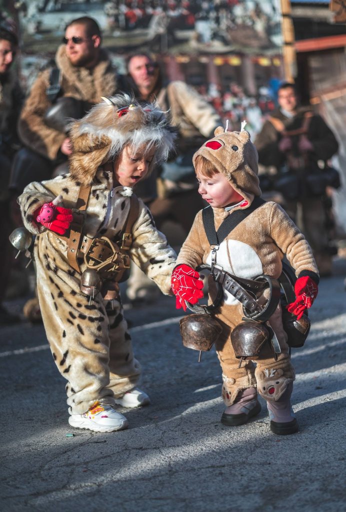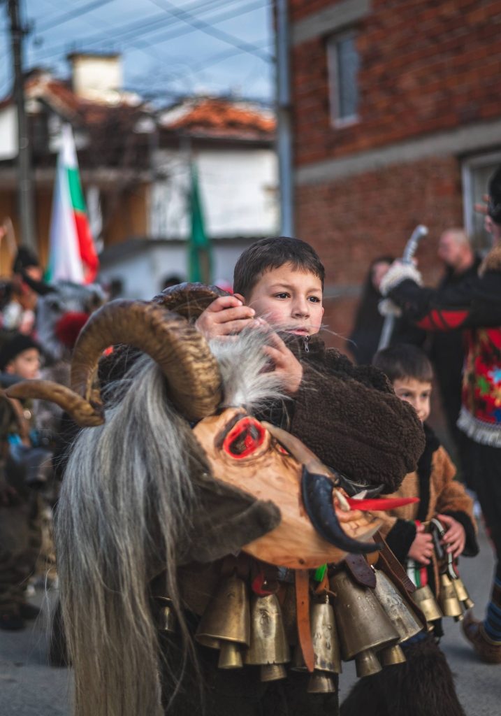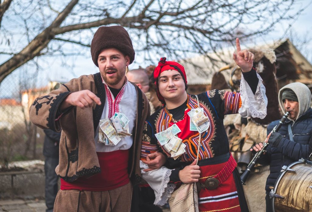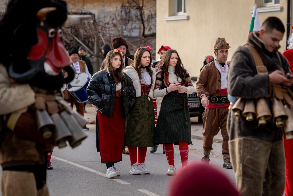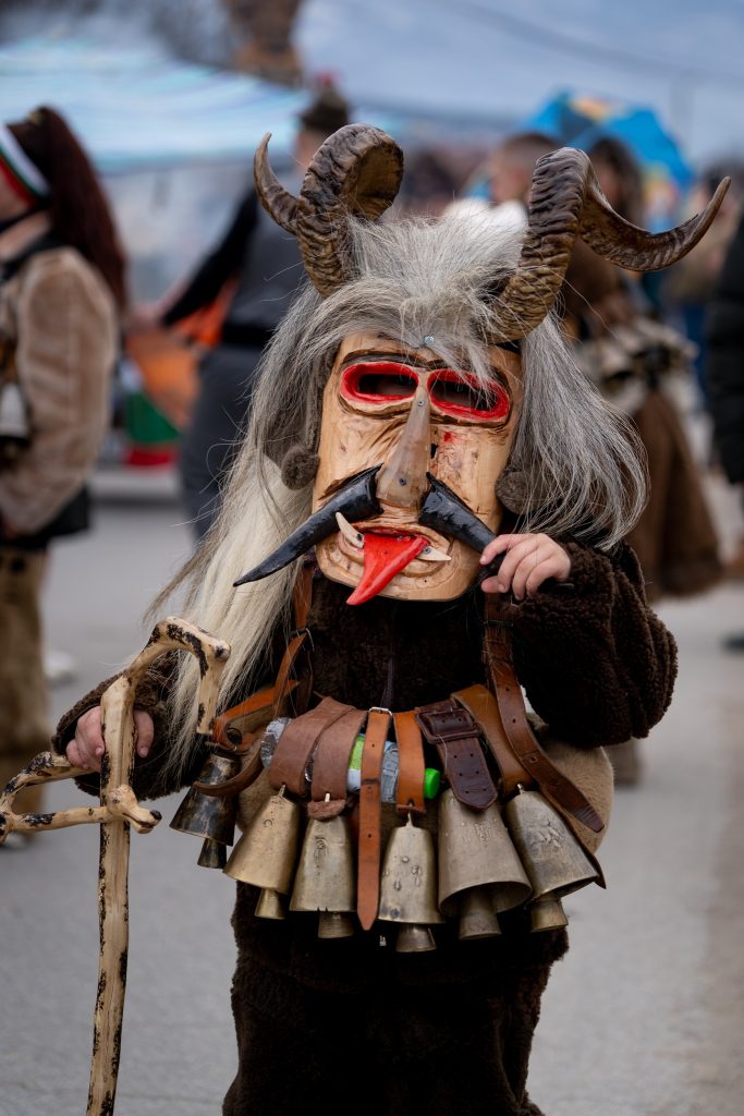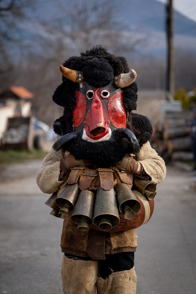 Играта на маскираните мъже е мистично единство на ритъм, звук и багри. Те се движат със специфична стъпка, носят внушителни маски и самобитни костюми и огласят селищата си със стотици звънци, примесени с наричания и благословии.