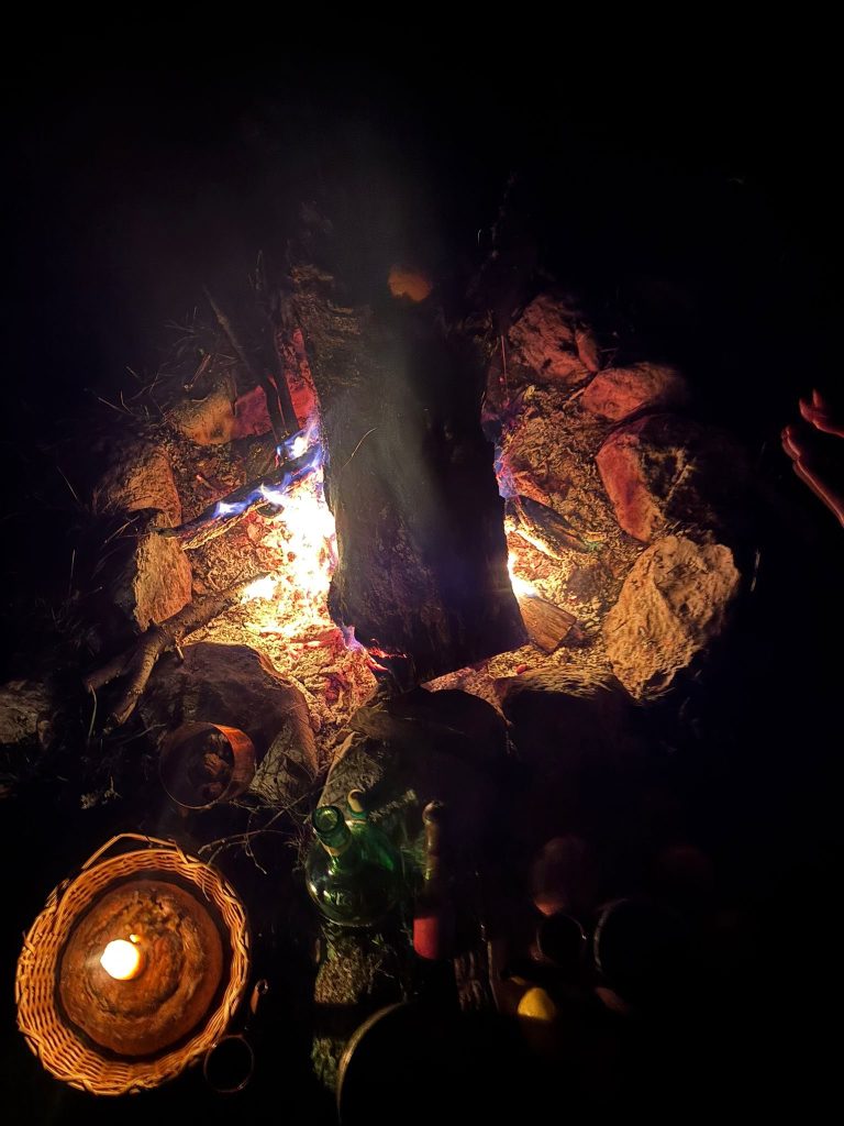 След това се пали ритуалния огън, който ще служи и за олтар за тази вечер. Започват древните мистерии….