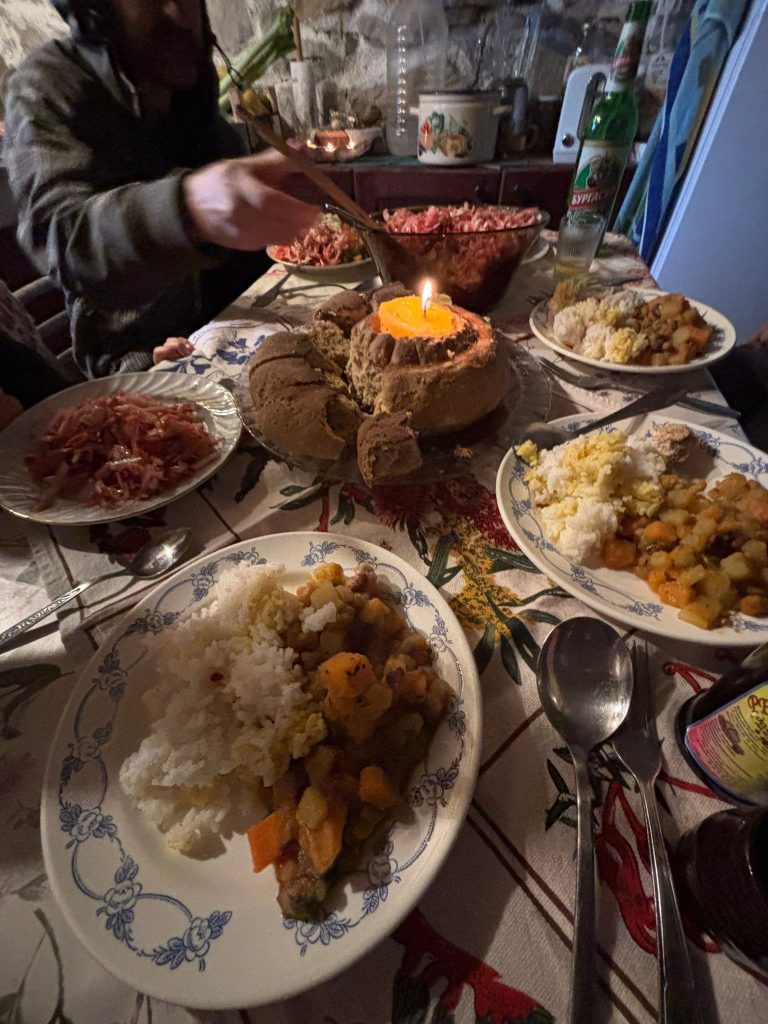Дойдоха тайни полазници, както си требва, черпихме ги с ритуален хляб със свещ от масло, яхния и ориз с шафран, ще е на майсторлък и берекет!